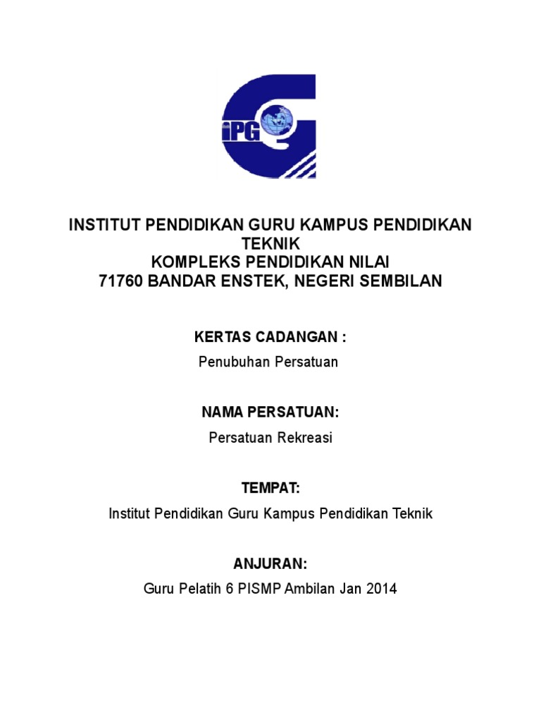 Kertas kerjapenubuhan kelab taekwondokolej matrikulasi selangor. INSTITUT PENDIDIKAN GURU KAMPUS PENDIDIKAN ISLAM KERTAS KERJA PENUBUHAN KELAB CATUR IPG KAMPUS PENDIDIKAN ISLAM f10 TUJUAN Kertas kerja ini dikemukakan kepada pihak pentadbiran IPG Kampus Pendidikan Islam untuk memohon pertimbangan sokongan dan kelulusan bagi. Contoh Kertas Kerja Hari Karnival Kelab Dan Persatuan Akademik.